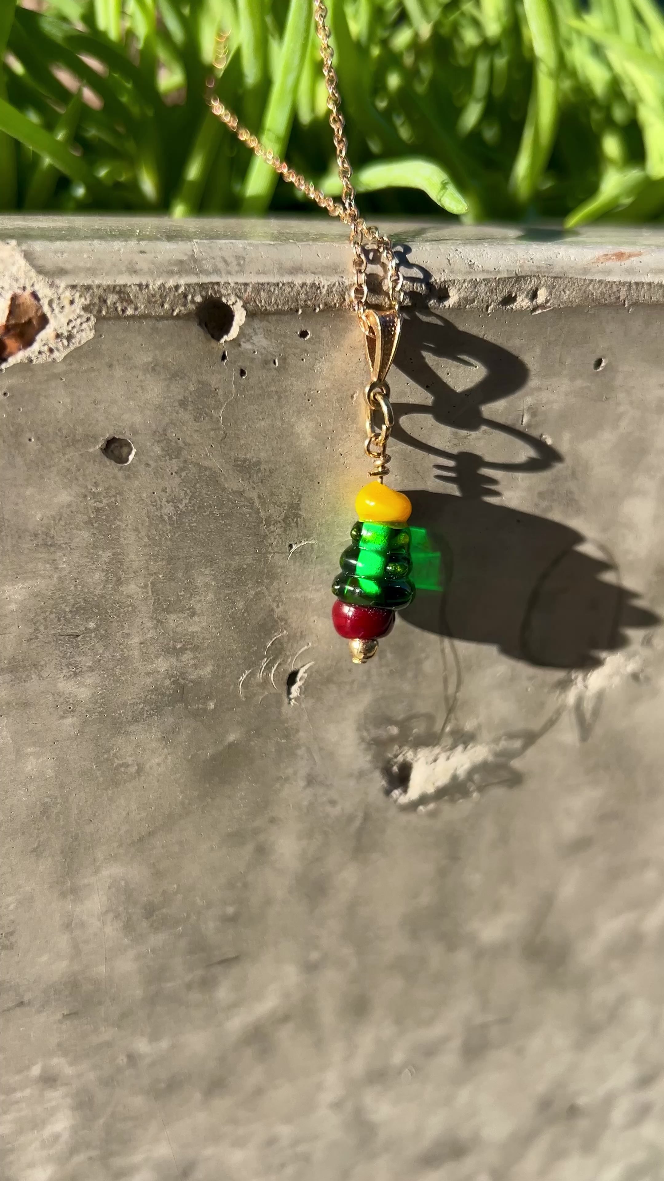 ☃️Lampworked glass with gold-tone chain